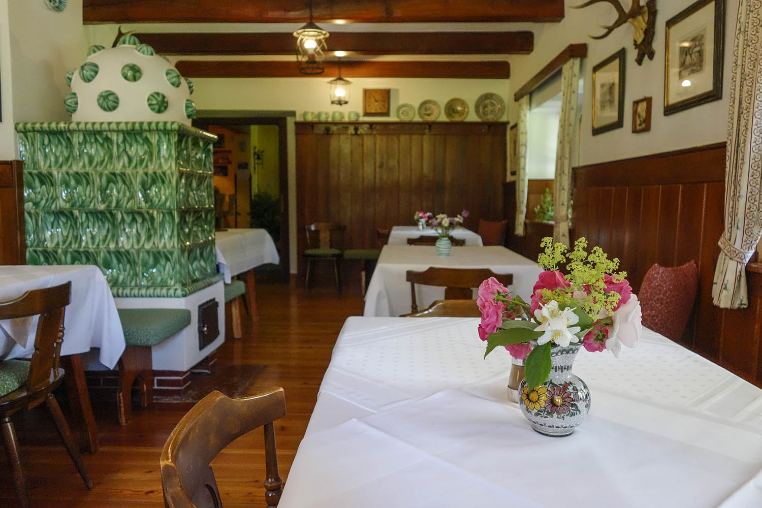 Unsere Kleine Gaststube mit Kachelofen ist ein besonders gemütlicher Raum im Haus und bei unseren Stammgästen besonders beliebt.